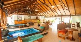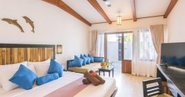On a serene tropical island with white-sand beaches, this relaxed beachfront resort is 38 km from Ibrahim Nasir International Airport and accessible by speedboat. The laid-back beachfront rooms come with air-conditioning, minibars, and patios with sunloungers. Upgraded, island-chic rooms add free Wi-Fi, flat-screens and 4-poster beds, plus open-air bathrooms and outdoor bathtubs with privacy screens. Breakfast is free. Amenities include a casual open-air restaurant/bar with regular live music, a cafe and a beach bar. Theres also a gym, a dive center, and a spa offering massage services. Activities include snorkeling and dolphin safaris.